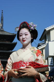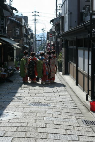 となりに座っていたまっこさん、タリオリーニの量がこの5倍くらい食べたいと言ってました それにしても初めて会ったとは思えない会話、会話・・・ 時間も3時間くらい取ってくれましたが、まだ話し足りない・・・ 席が遠くてお話も全然できない人もいて、すこし残念でしたが また来年再会ってことも可能ですしね・・・・ 京都五条坂陶器市 オフ会 また!よろしく頼みます!雪乃姉さん!あはっ お店を賑やかに出たところで、わざわざシェフが出てきてくださり、記念撮影 ほんといい記念になりました オフ会の皆さん、集合写真送りますから、個人的にメールくださいね♪ さて、ここを後にすると 5人のなんちゃって舞子さんが・・・ 青い空に、お着物が素敵
