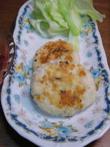 これは創作料理なんです。 (聞こえがいいかな?) ジャガイモのマッシュと鶏ひき肉をよく混ぜ、葱を入れて、テフロン加工のフライパンで油なしで焼くと、表面が香ばしくて結構イケてる。 |
