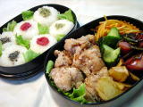 今日明日、文化祭とのことで次男の お弁当 体が大きい割には少食 私は暑いから腐らないかと不安・・・・ |
