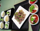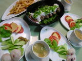 *13日の夕食 和の食材でイタリアンで、豆腐とトマトとバジルのカプレーゼ もやし、インゲン、牛肉の紹興酒炒め 太刀魚と若布とキュウリの酢の物 ソーメンとレタスのお味噌汁 |