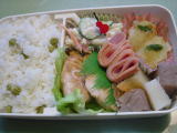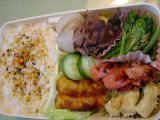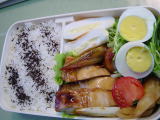 | 今朝もお弁当作りましたが、時間も十分あったのに、色々していたら写真撮るの完全に忘れてしまいました。 メニューのみ* 鮭ごはん、鶏肉の照り焼き、アスパラガスとかにかまのサラダ、シーチキンとキュウリの餃子揚げ、竹輪のキュウリ詰め 帰ってきた次男の報告によると、鶏肉が美味しかったし、サラダもgoodとのことです。 |