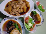 鶏肉と豆腐とシソの葉入りのひりょうず(和風ハンバーグにしようかなと思いつつ揚げてみました) 干し大根とごぼ天の煮物 高野豆腐と人参の煮物 そば米雑炊 おばあちゃんの好みを考えてここ数日作っています。 おばあちゃんは肉は鶏肉しか食べません。 |