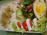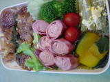 出来立てのお弁当! 豚肉のマヨネーズとお醤油焼き丼 ベーコンのウィンナー巻き ブロッコリーとトマト 栗かぼちゃ ふきの卵とじ 豚マヨは冷めても美味しいので次男の大好物 生野菜をもっと詰めて!と言ってた。 |