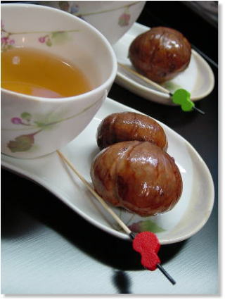 - 沸騰した湯で3分ほどゆでる。(鬼皮をむきやすくするため)栗の渋皮に傷をつけないように注意して、鬼皮をむく。