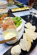 柔らかフランスパンのクリームチーズのせ (ラズベリージャム ブルーベリー 干し柿)