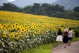 この時のヒマワリは 背丈も小さかったのですが 今年は 密集度も高さも違って 展望台まで設置されていました