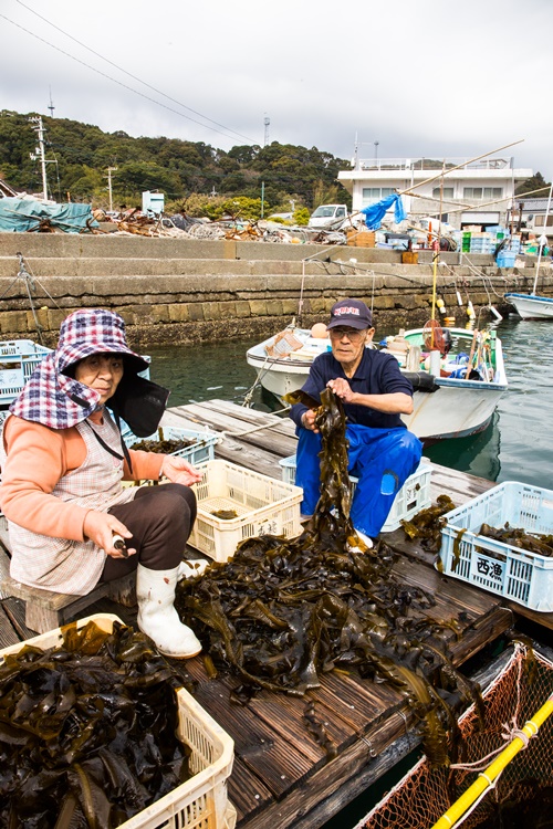 採れたて若芽の仕分けをされていたご夫婦