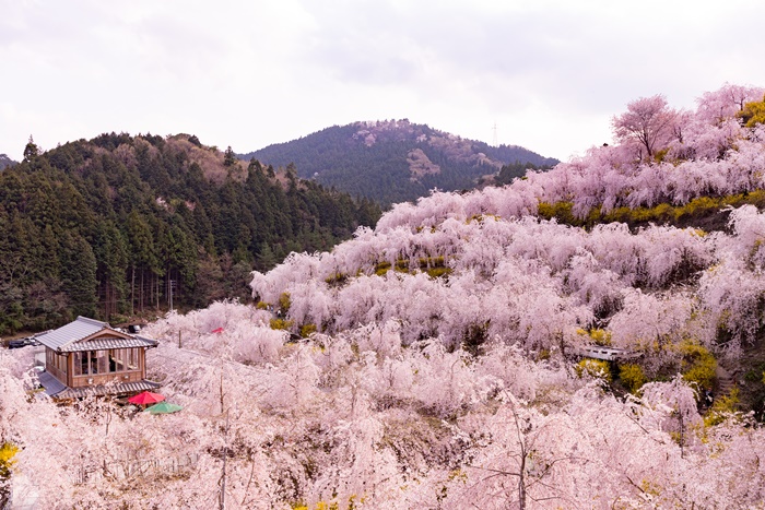 ここは全国でも 珍しい神山枝垂れさくらの山になります