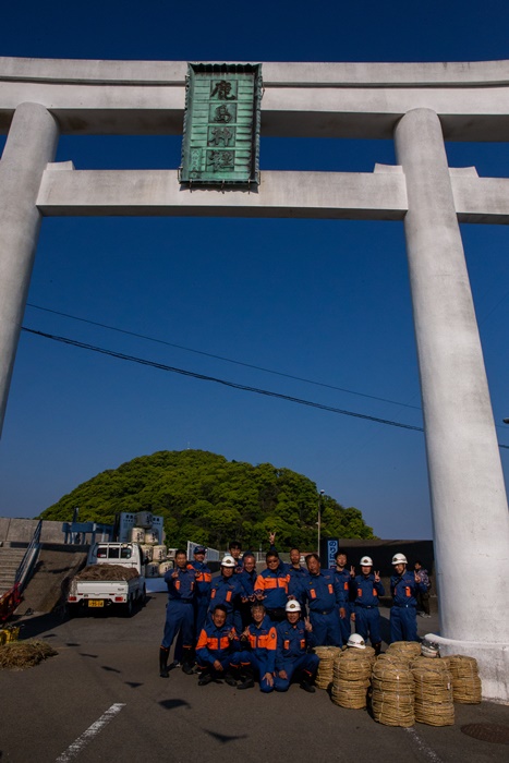 5月4日は伝統行事で鹿島沖の夫婦岩を結ぶ 大注連縄(おおしめなわ)を張替えま...
