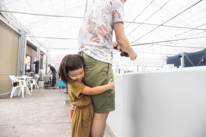 水深2mの釣り堀を見て怖がっていました