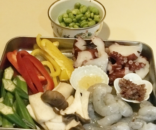 アヒージョの下ごしらえの盛り合わせも素敵