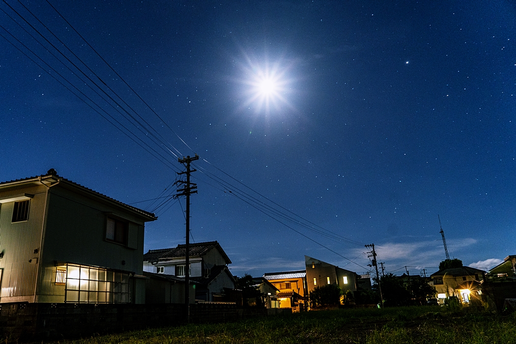 この明るい月の夜にも星が見えることに感動していました