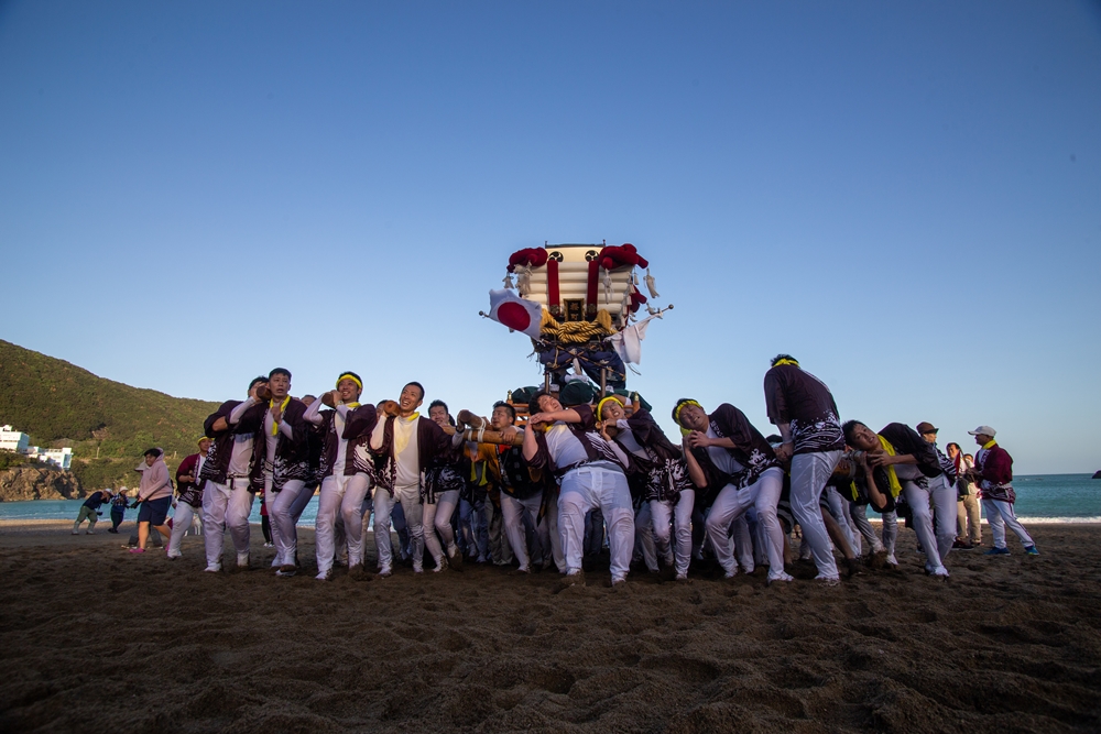 「ちょうさ(太鼓)」は一番太鼓から順に大浜海岸に繰り出し 八番太鼓まで すべての町が海に繰り出す一番の見所と言えます