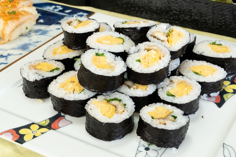 - 卵と穴子の巻き寿司