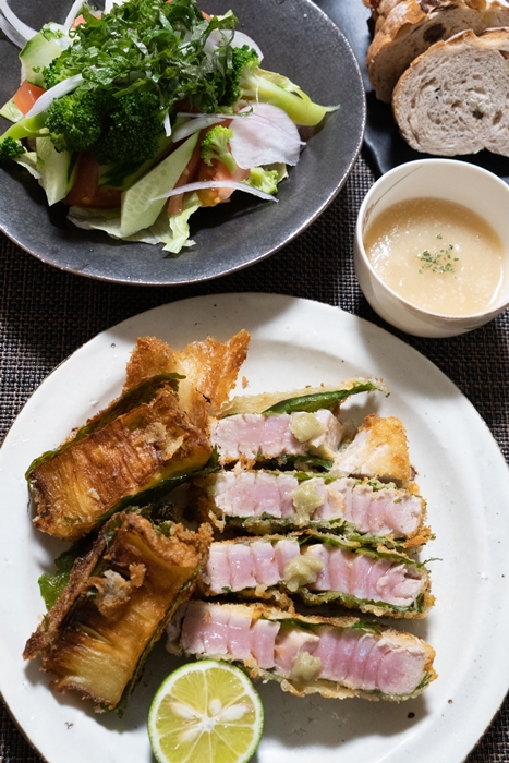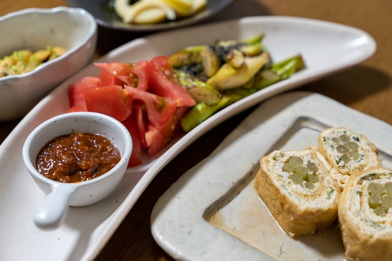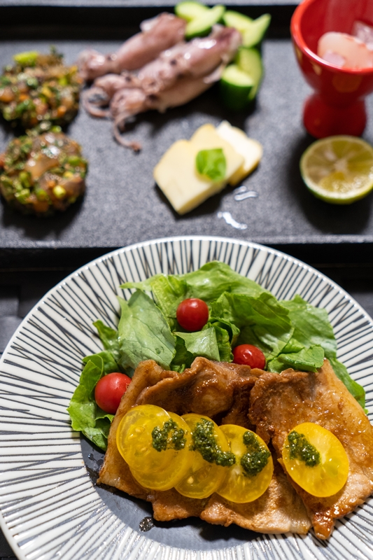 - クリームチーズとトマトカップレーゼ(ジェノベーゼソース)