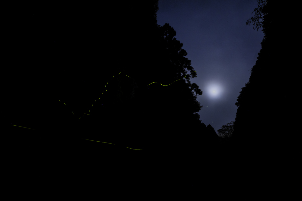左には川が流れ右側の杉林にはヒメボタルがいました💖