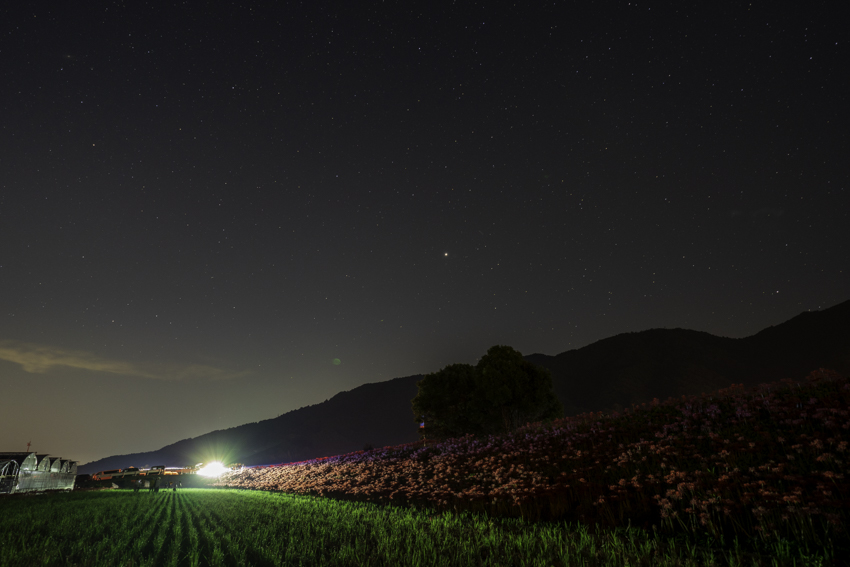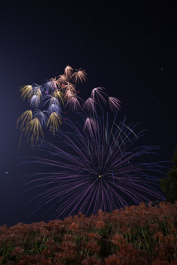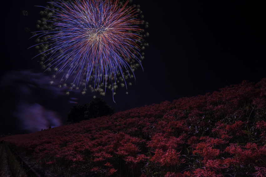 一昨年ここで彼岸花と中秋の名月を撮っていたらいきなり花火が上がりました