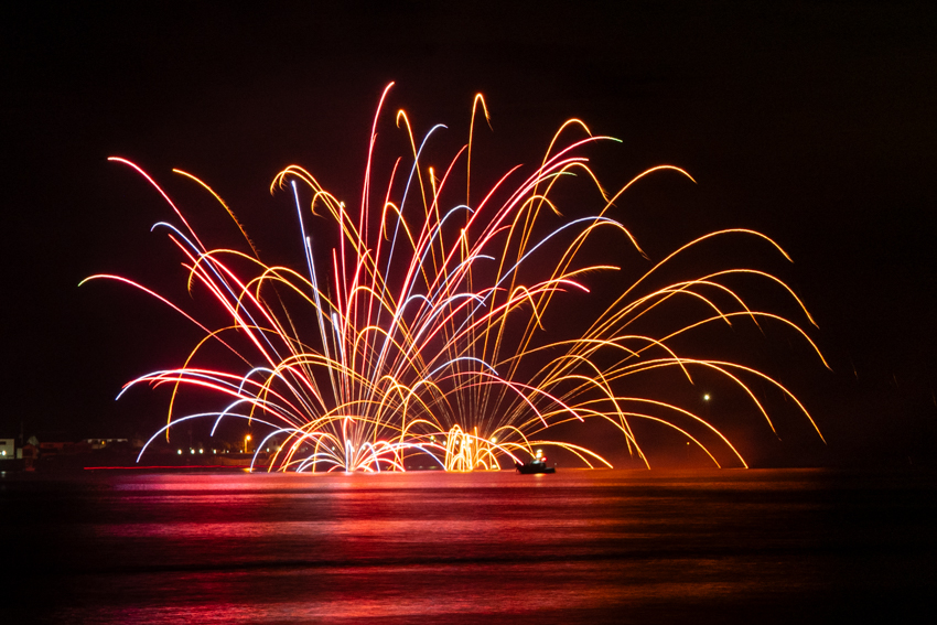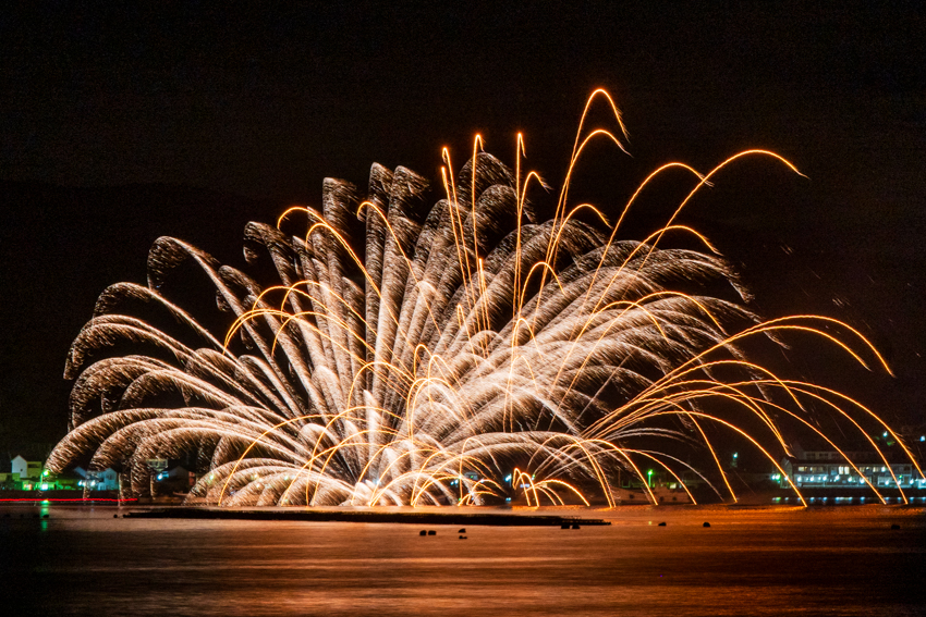 背景をパノラマで撮り 比較明で水中花火を重ねてみました