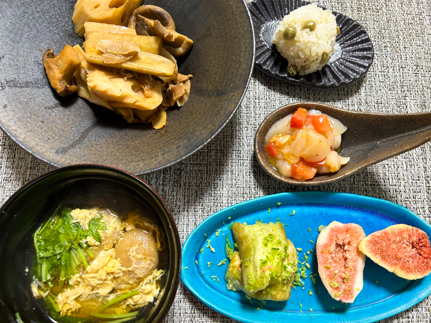 2023 5 Oct 料理, 徳島, 秋 2023年9月 ゆうごはん すだちの季節なので毎食付けています 鶏の唐揚げ たこ焼き まけまけいっぱい きれいに丸くなりました 具だくさんのたこ焼き 穴子丼 お餅の牛肉巻きに蓮根入れてみました! 大好きなトマトのチーズ焼き いちじくが美味しい季節 カマスの干物 すだちが合う~ ストロガノフ風 海鮮丼 初 伊勢うどん (柔らか過ぎて苦手)