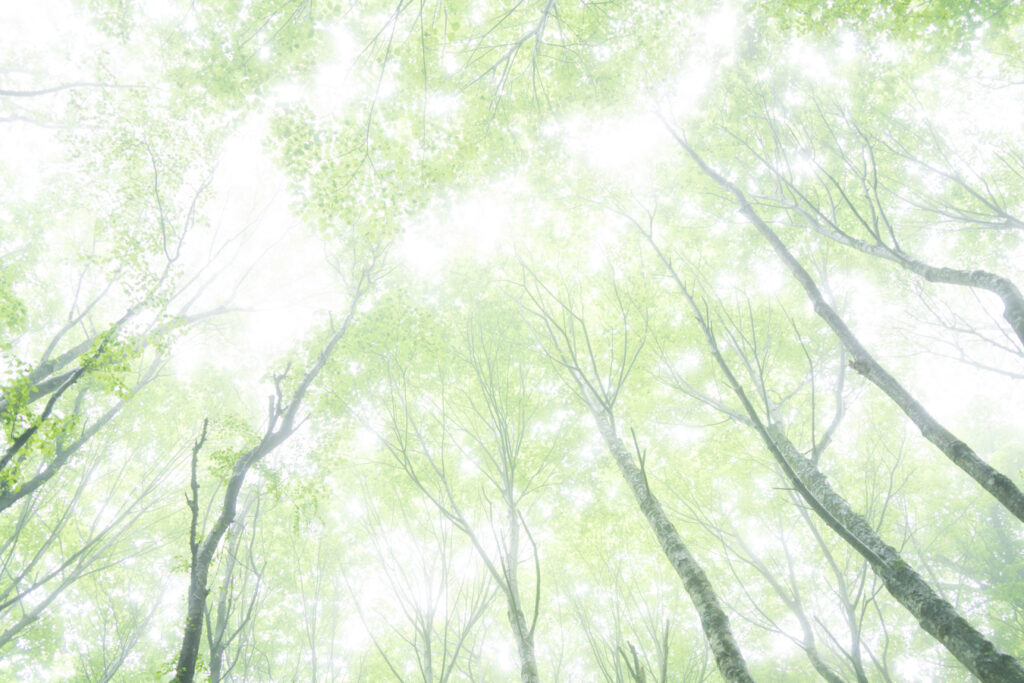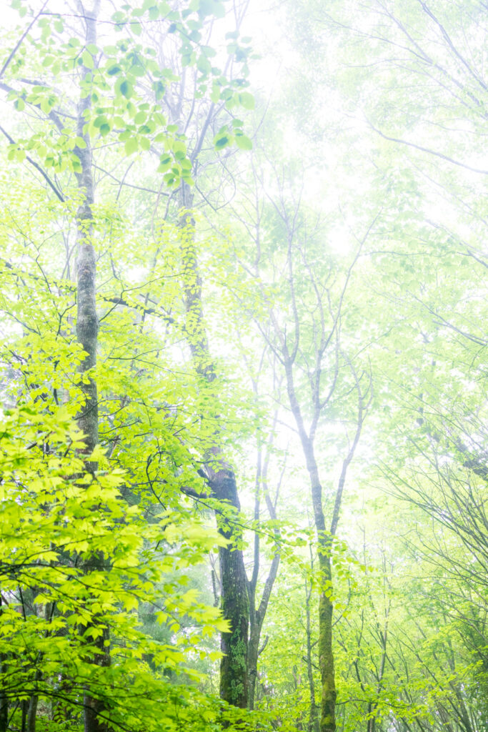 新緑と霧
