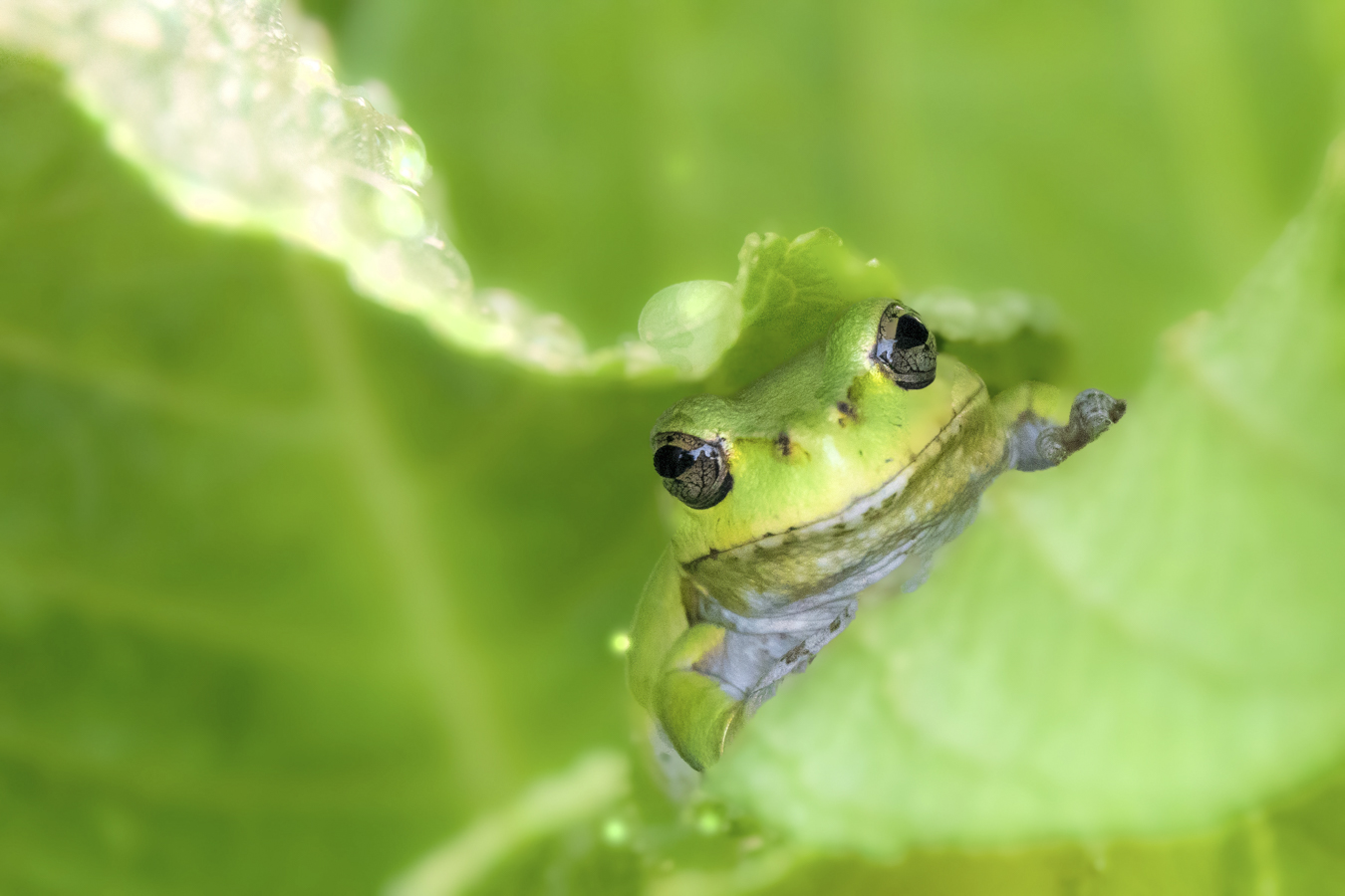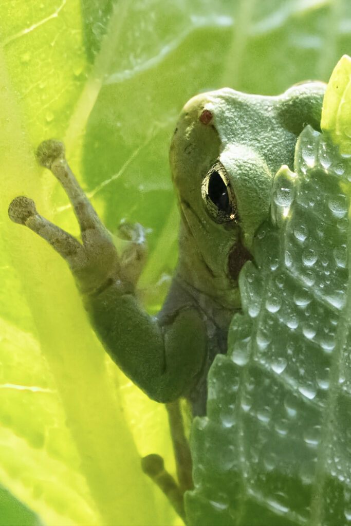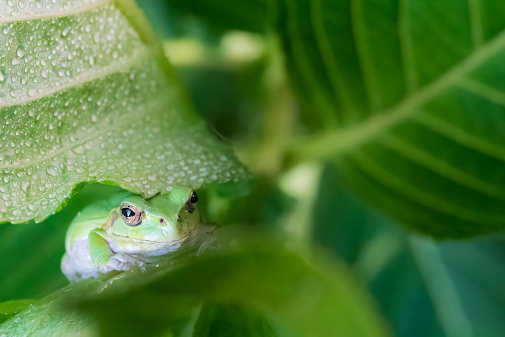 夫が出勤前に 紫陽花の中に「カエル」が住みついていると言うので