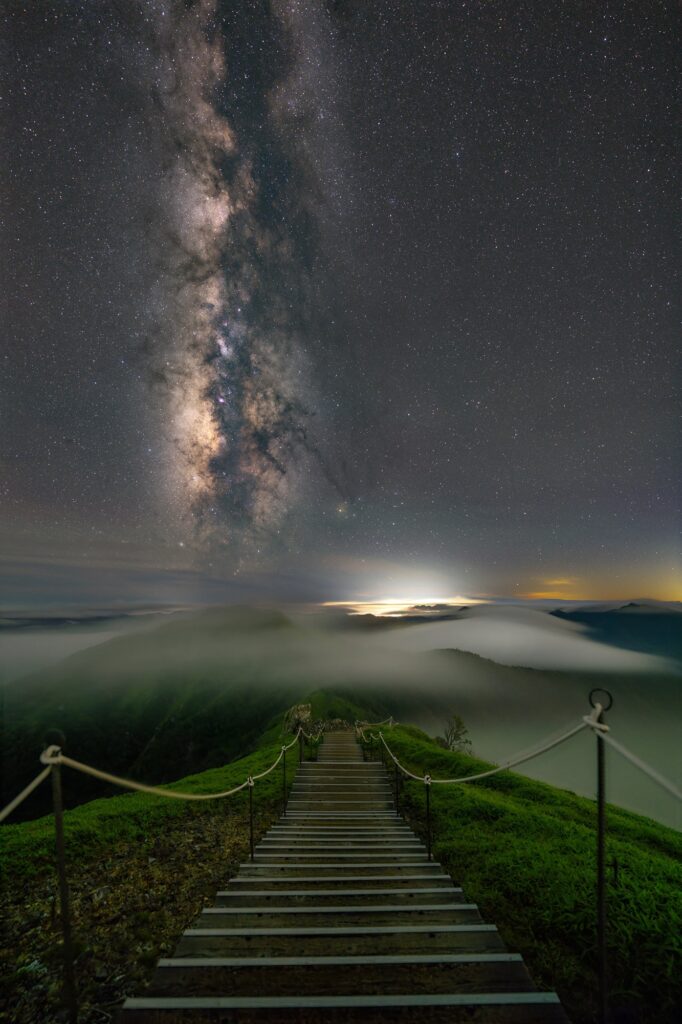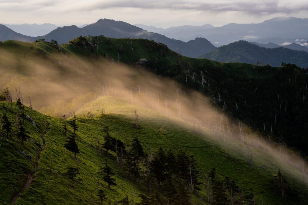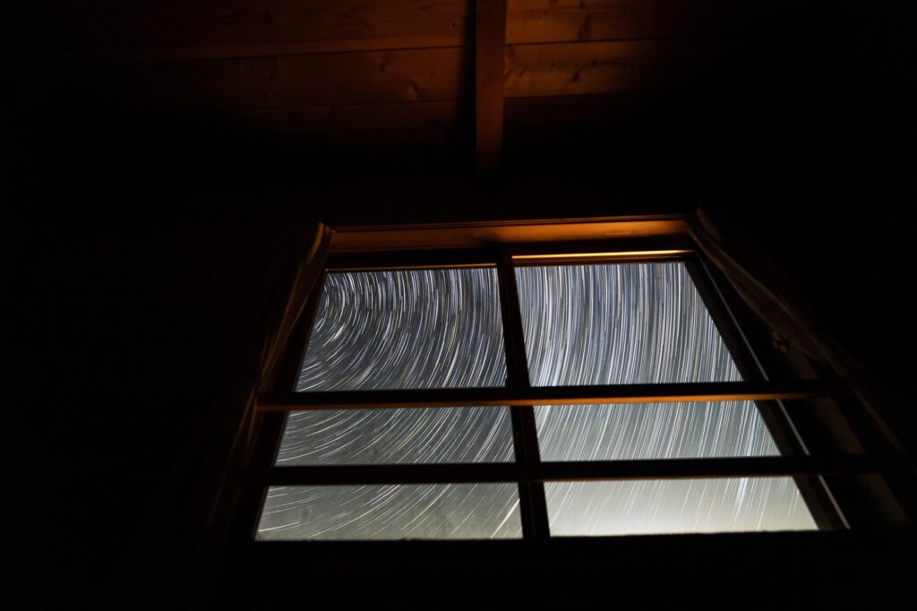 窓越しの軌跡(剣山頂上ヒュッテより)