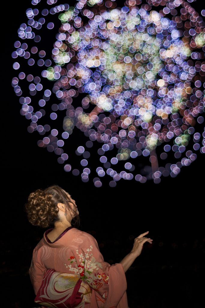 花火が真正面に見える特等席で 総勢25名の賑やかな夜でした